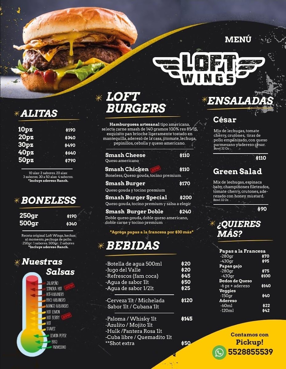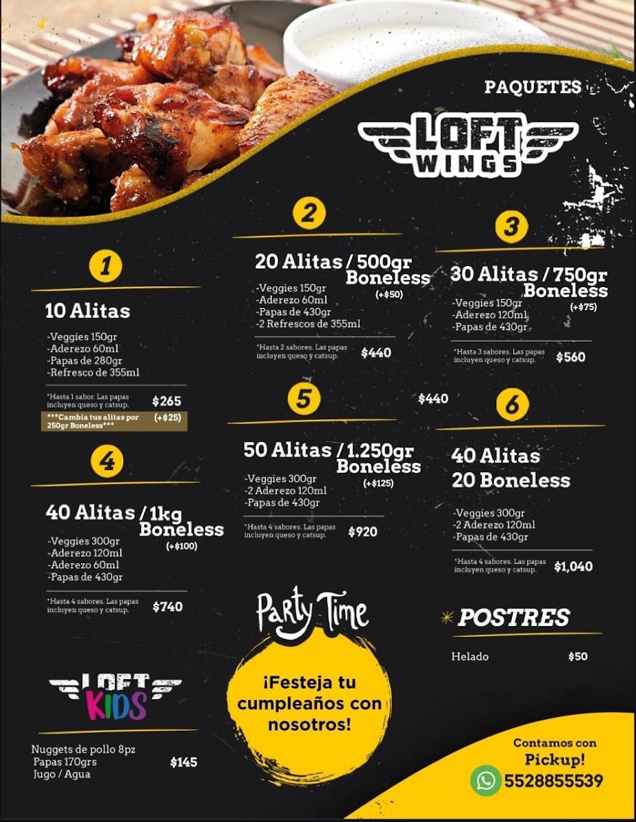Welcome to Loft Wings, a vibrant dining destination located in Naucalpan de Juárez, Mexico. This family-run restaurant is celebrated for its inviting ambiance and a menu that showcases a delightful array of chicken wings. With an enthusiastic nod from customers who rave about their standout flavors, Loft Wings offers a variety of wing sauces that cater to all taste buds. Additionally, their hamburgers and boneless options have garnered praise for their quality and taste.